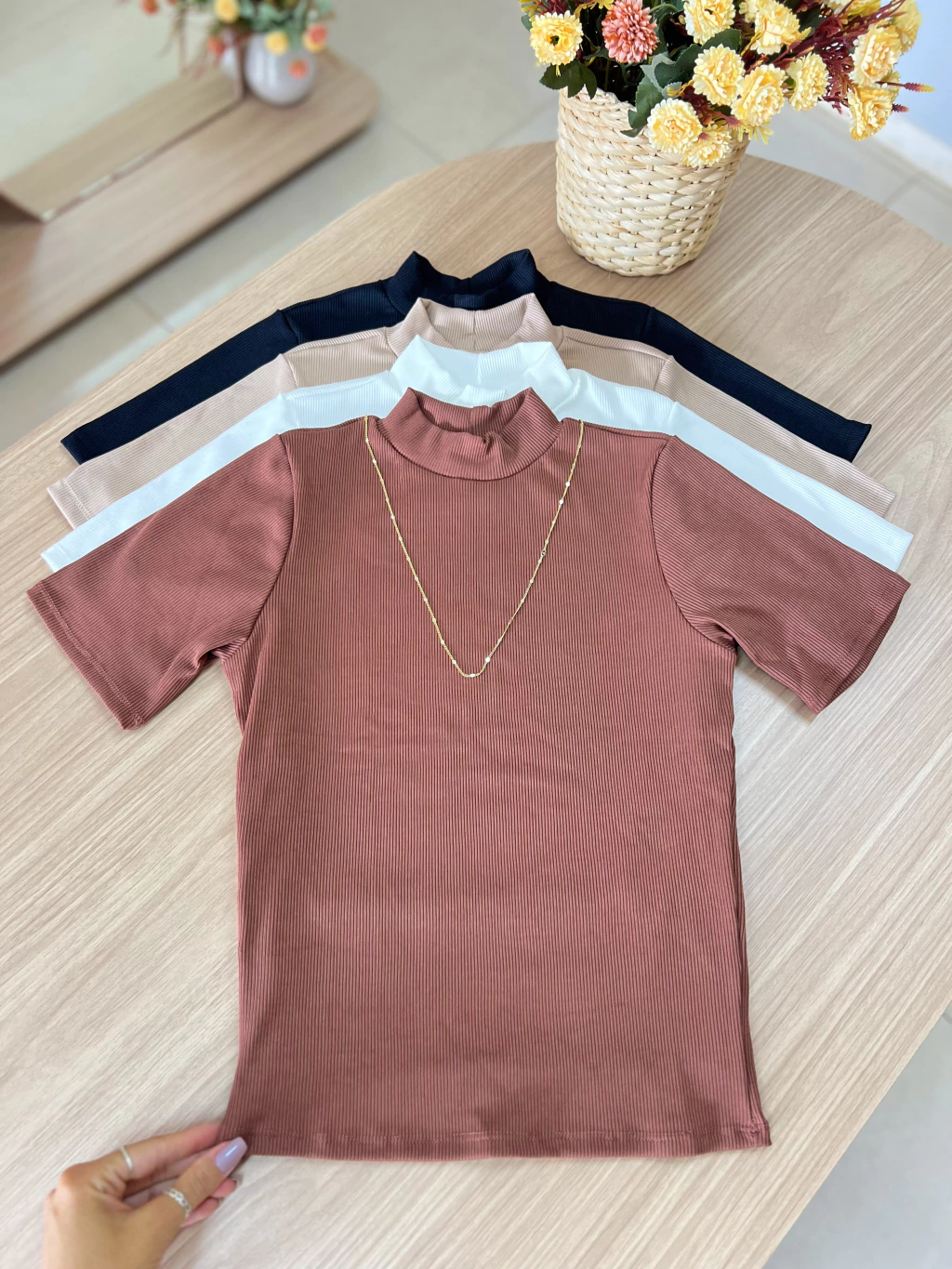 As fotos possuem uma leve edição para ressaltar as cores, e a luz artificial usada nas fotos pode alterar um pouco. Com isso, pode ocorrer uma pequena variação de cor, considerando também que cada celular/computador tem uma luminosidade
