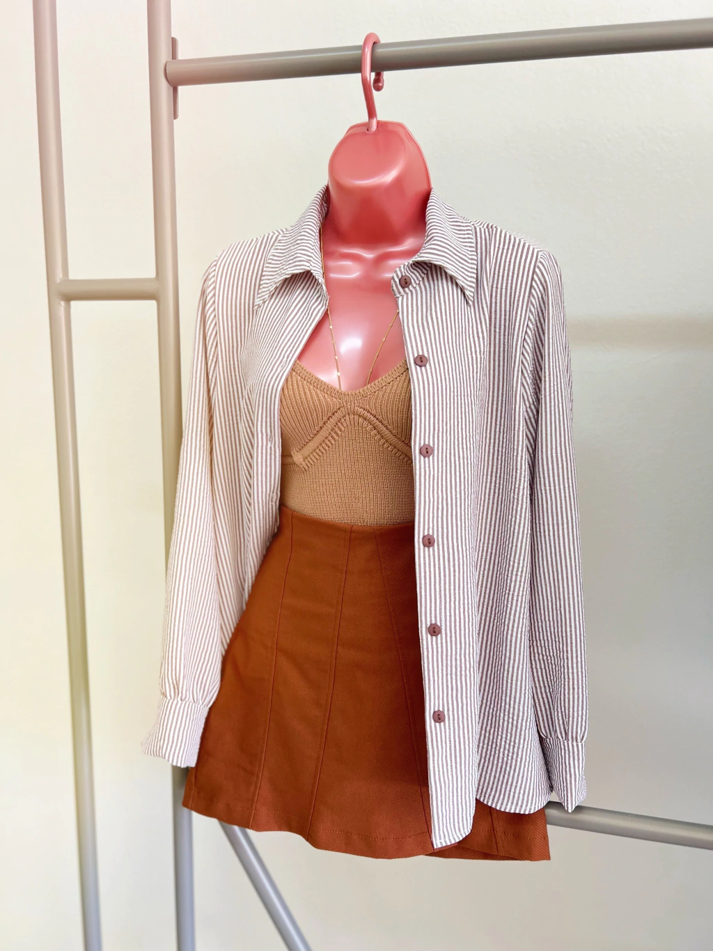 A Camisa Débora traz leveza e elegância para o seu dia a dia. Confeccionada em tecido leve com listras finas e delicadas, ela possui modelagem soltinha, mangas longas com punho ajustado e fechamento por botões frontais. Versátil e atemporal, pode ser usada aberta como sobreposição ou fechada para um look mais alinhado. — perfeita para compor produções frescas e sofisticadas em qualquer estação.