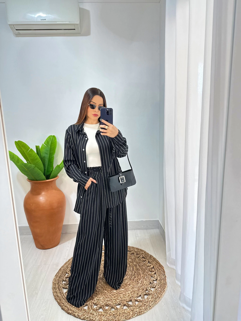 Um look versátil que transita perfeitamente do casual chic ao office look moderno. Combine com acessórios neutros para um visual equilibrado e atual.