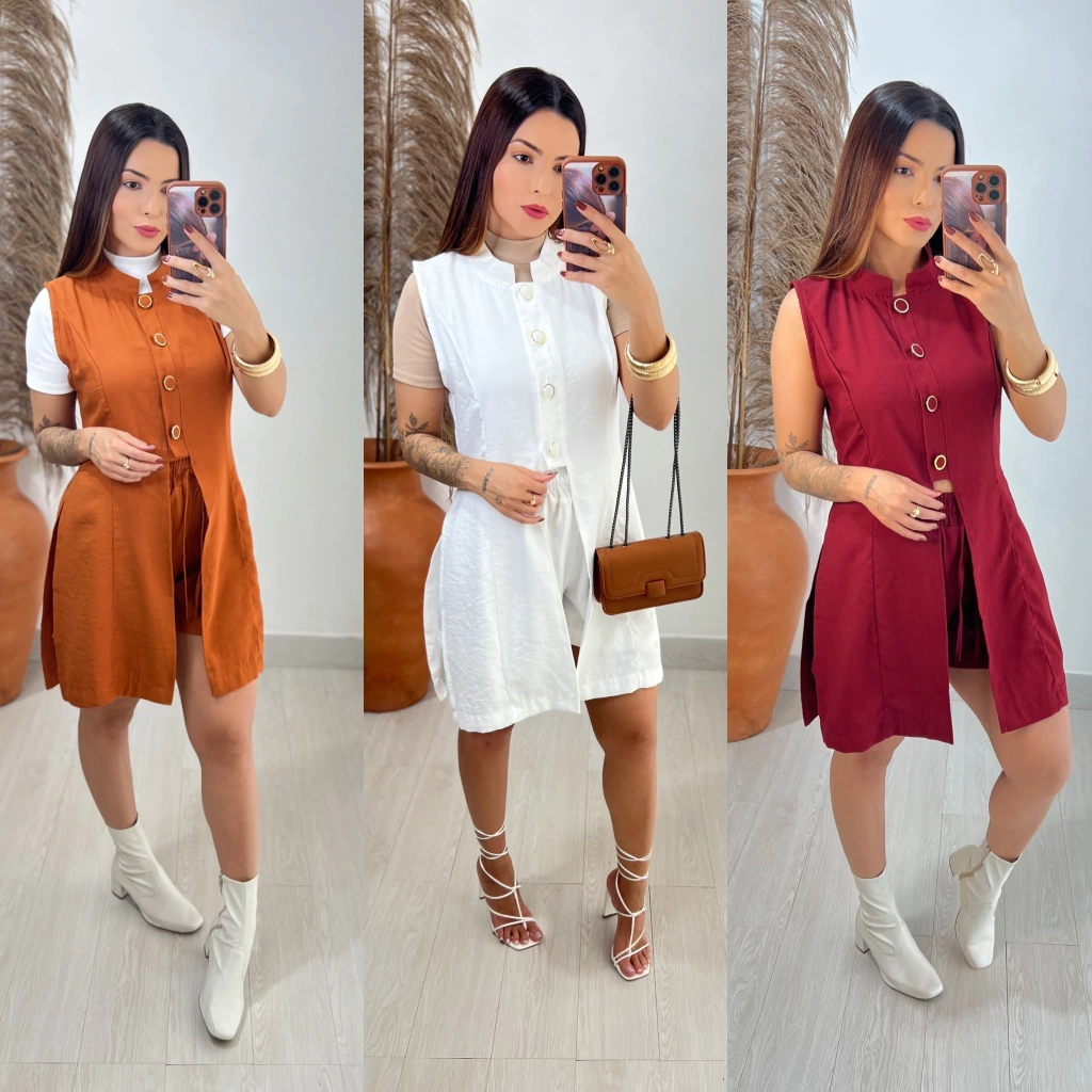 Max colete possui botões encapados com acabamento dourado ( os botões abrem )