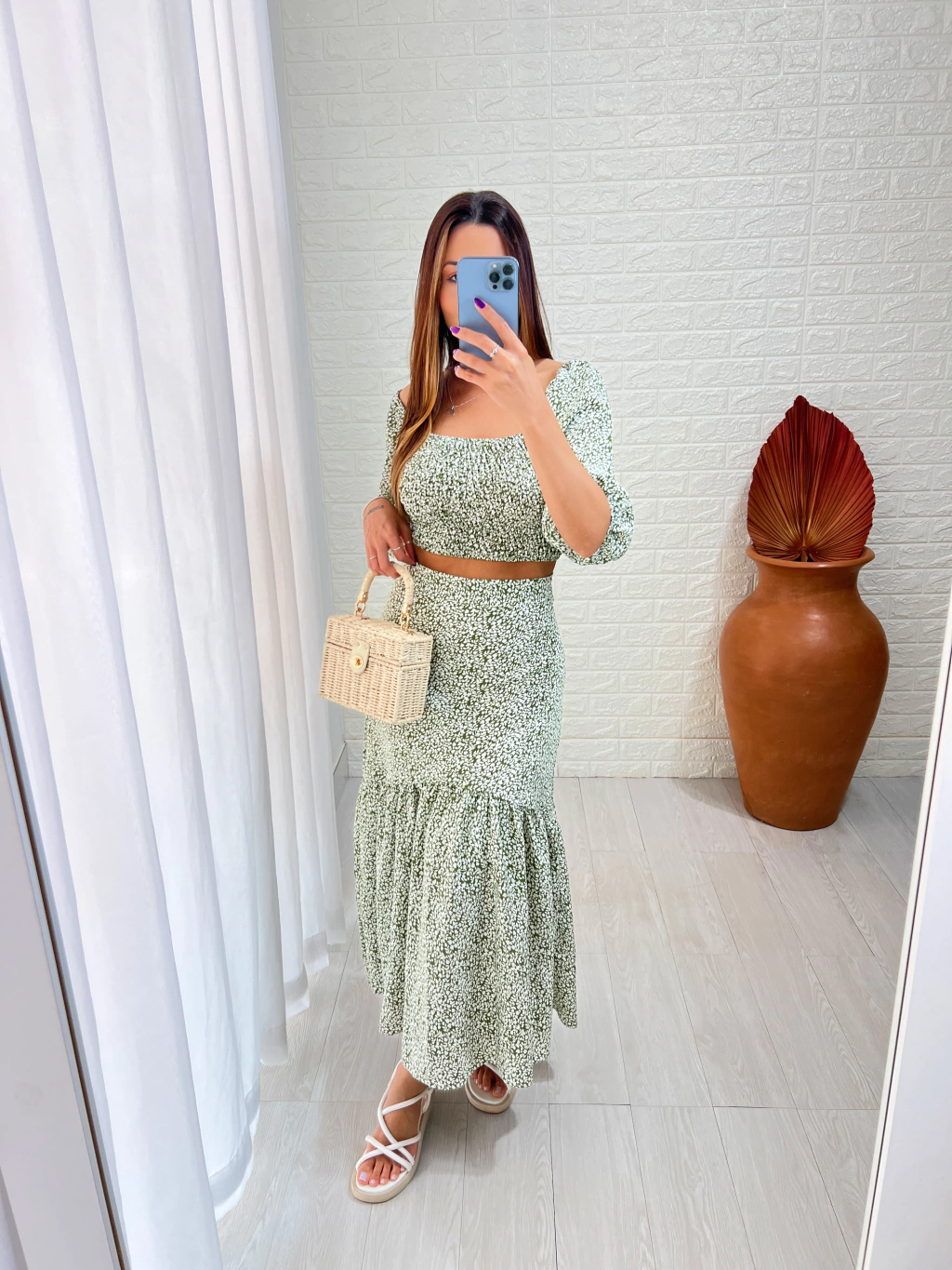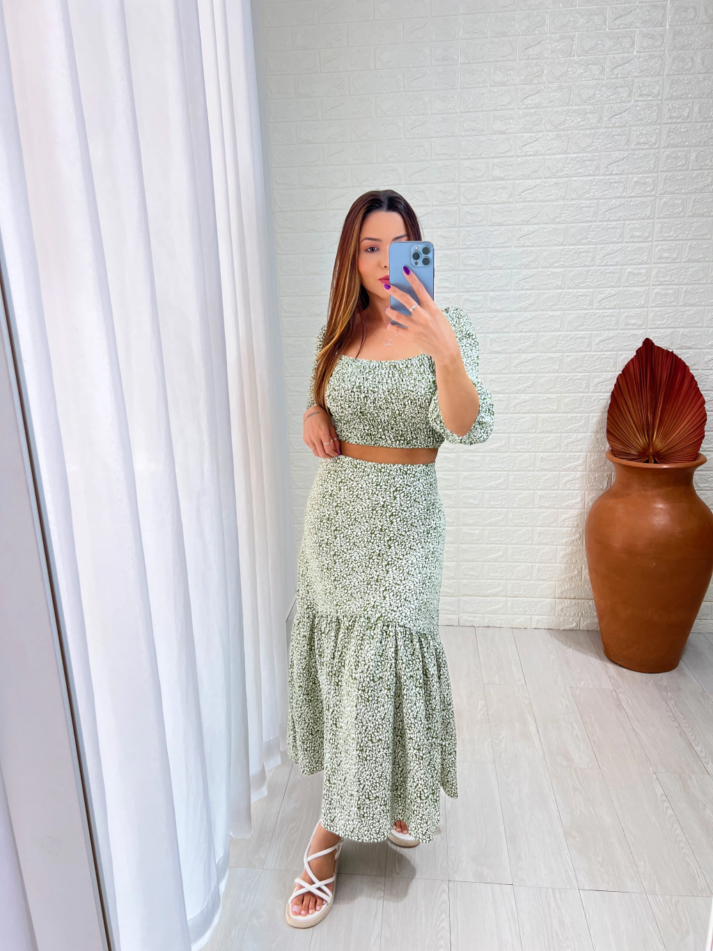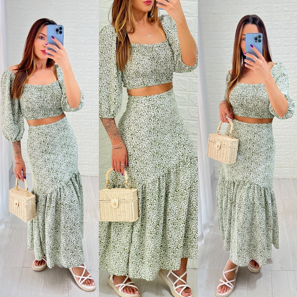 Características que vão te conquistar: - Tecido Crepe Duna: Leve e arejado, perfeito para aqueles dias em que você quer se sentir como uma brisa suave. - Cropped com Lastex: O corpinho fica justo e confortável, e o modelo ciganinha é um charme à parte! - Saia Midi com Forro: Elegância e conforto, porque quem disse que não dá para ter os dois? - Zíper nas Costas: Para que você não precise da ajuda de um amigo para vestir!