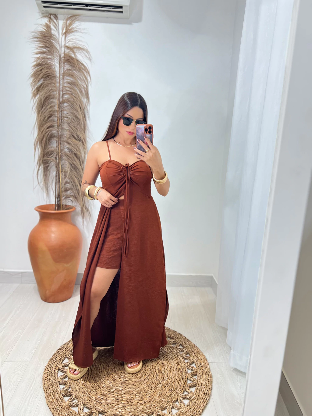 conjunto composto por bata túnica + shorts