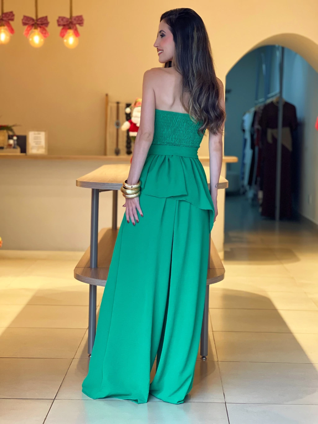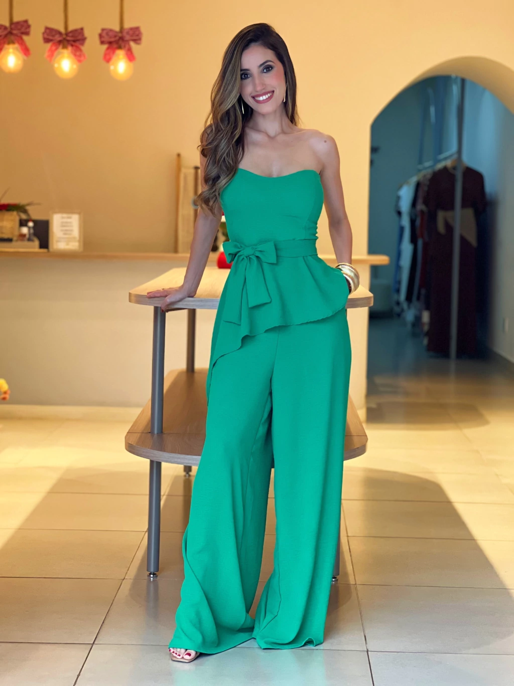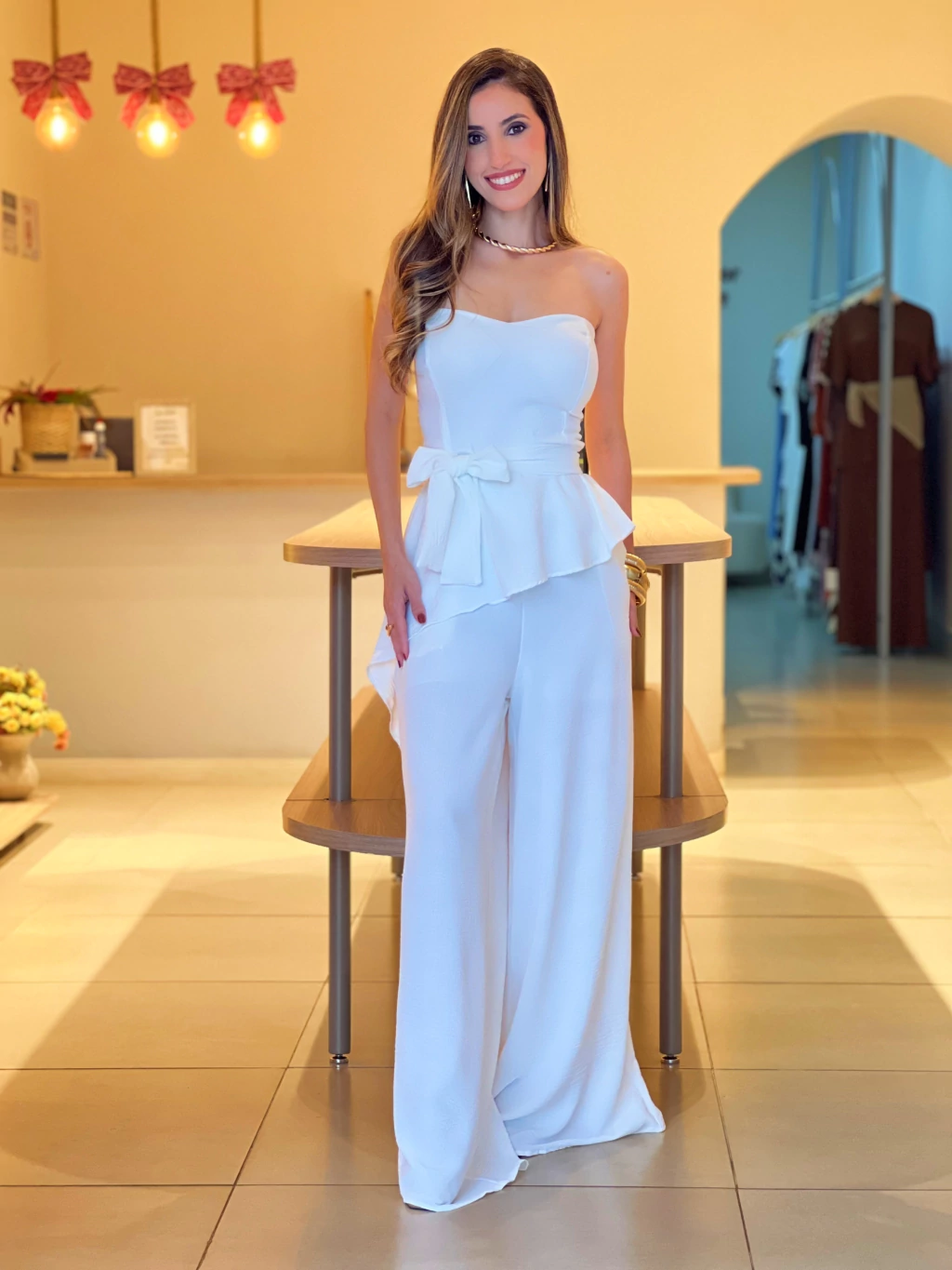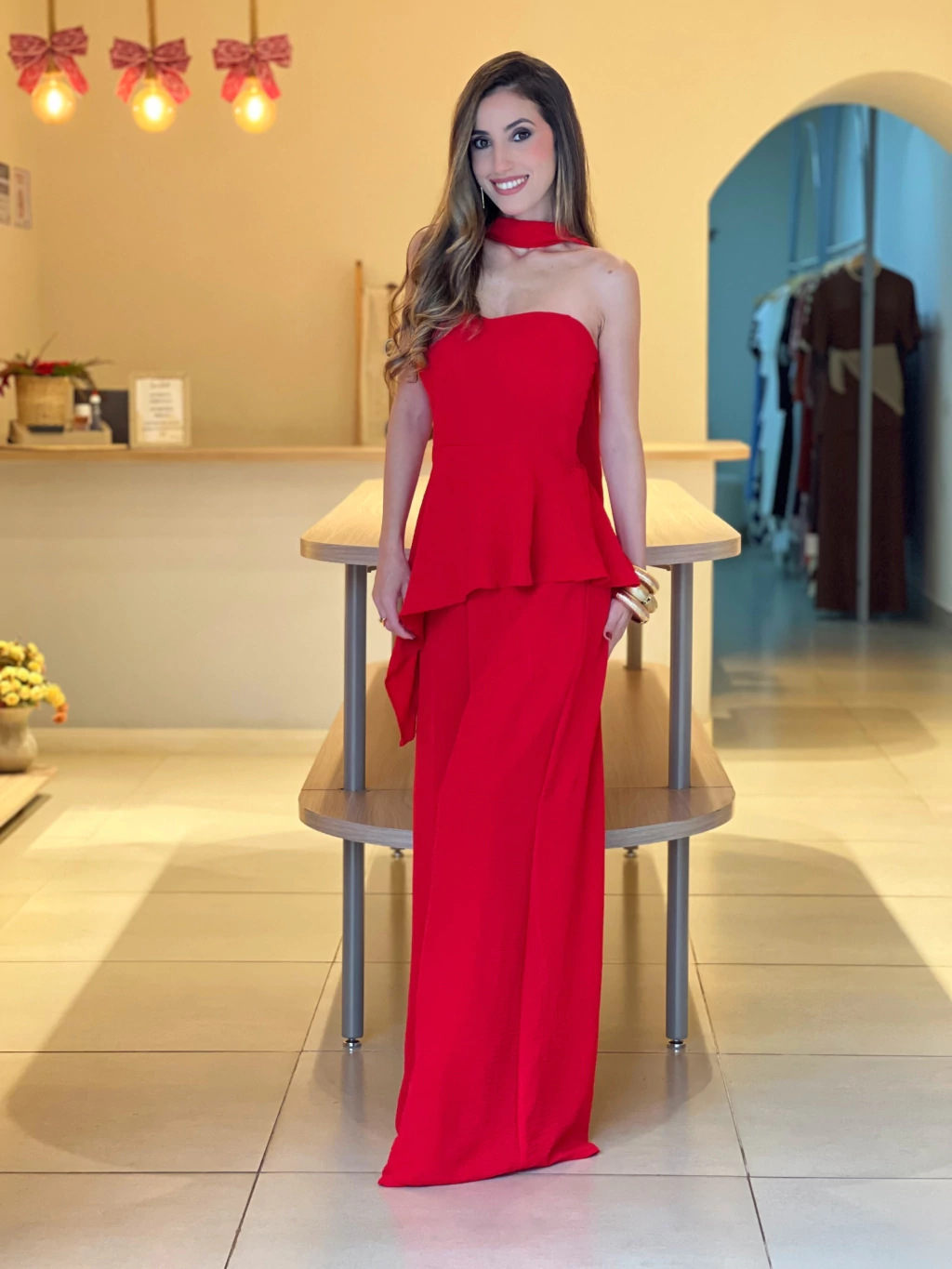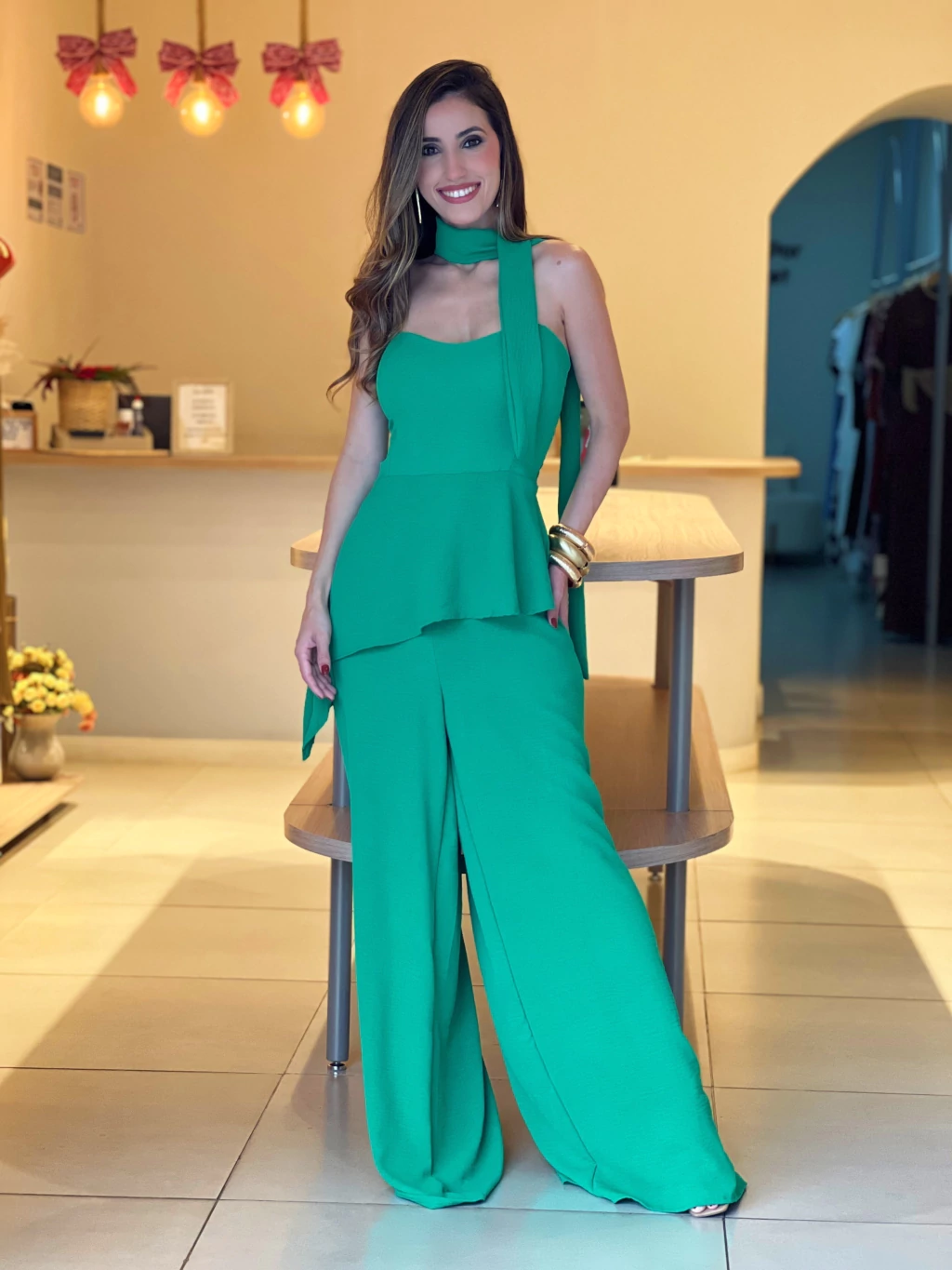 conjunto composto por : calça pantalona + Blusa peplum + faixa de amarração