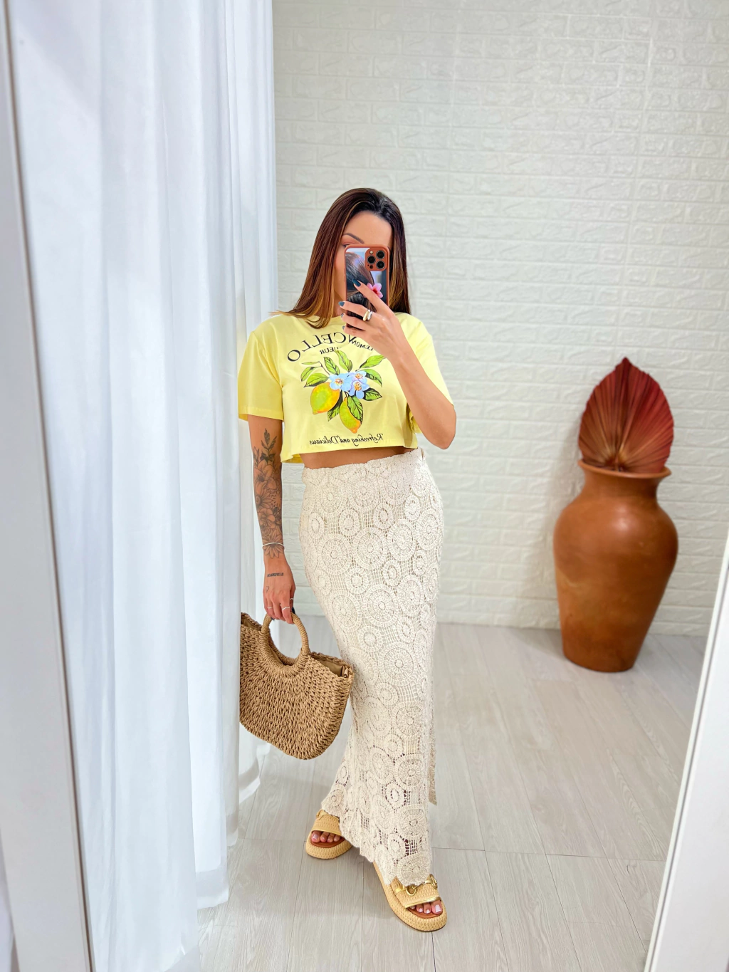 E não se esqueça: as fotos têm uma leve edição para ressaltar as cores, então, se a sua saia chegar com um tom um pouquinho diferente, não se preocupe! É só a luz artificial e a mágica dos celulares fazendo o que sabem fazer de melhor. Afinal, cada tela é uma tela, né?