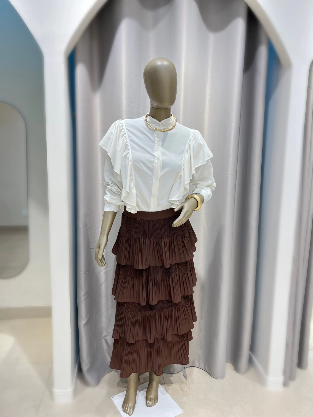 Com um toque feminino e fluído, a saia Daphne é uma excelente opção para quem deseja adicionar um toque de sofisticação ao visual.