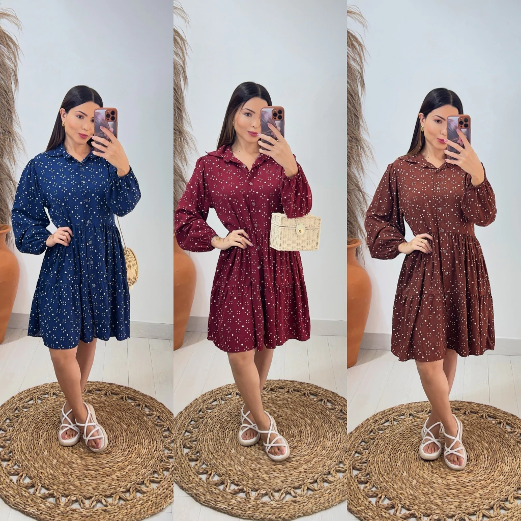 nosso vestido Brenda e fluido e delicado ; de manga ,com lastex no punho ; botões funcionais que abrem ; ideial pra quem procura estilo e conforto; podendo montar propostas tanto dia ; quanto noite :)