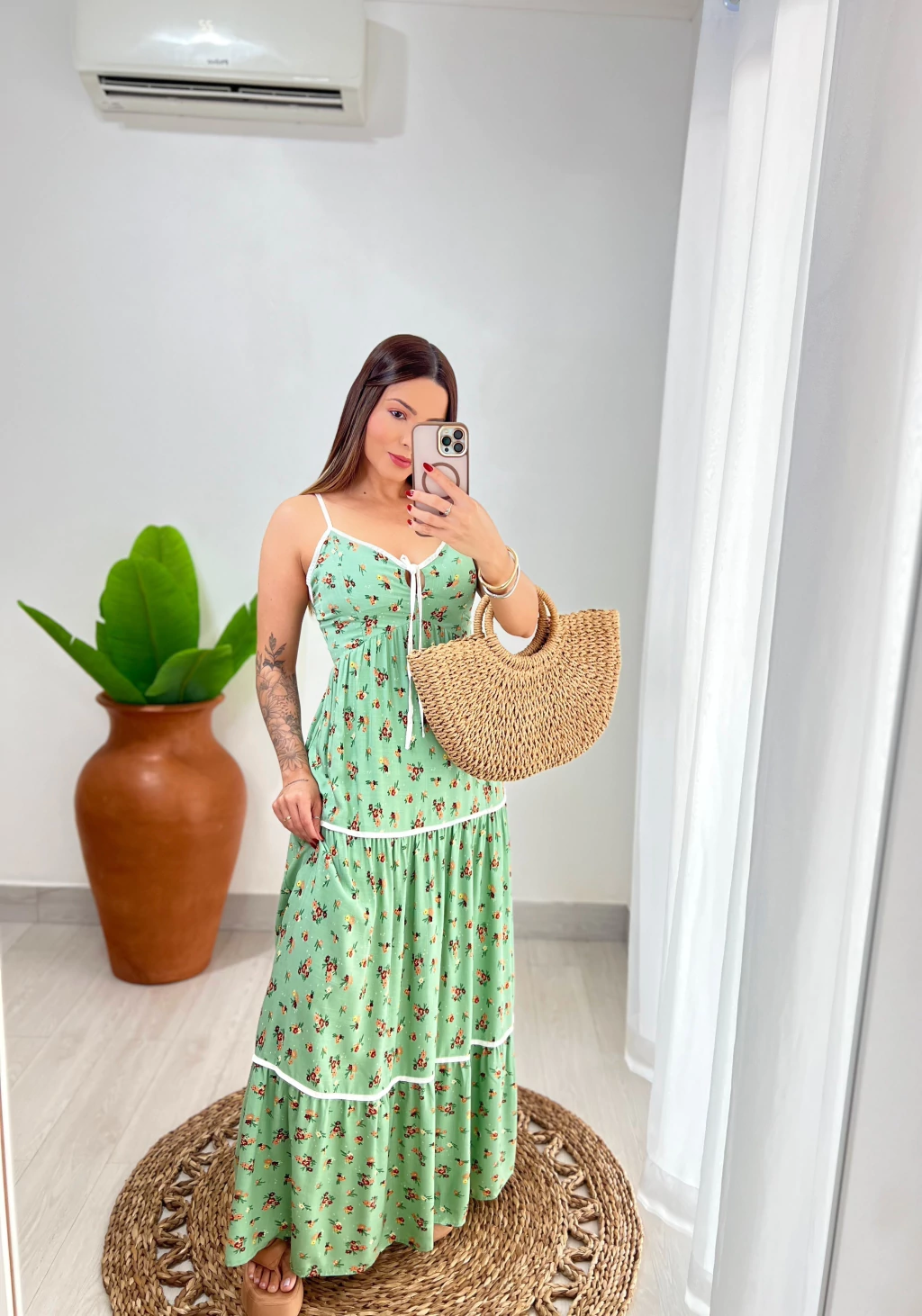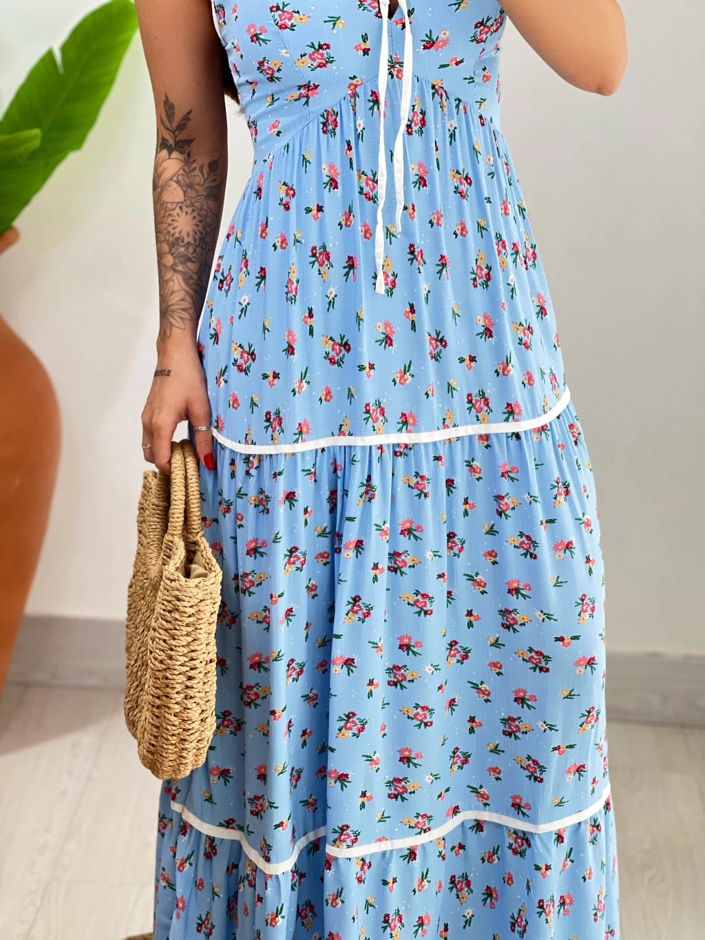 O vestido Giulia é a tradução perfeita da leveza dos dias ensolarados. Com estampa floral delicada e recorte em camadas, ele traz um caimento fluido e romântico. O detalhe em viés branco e o laço no decote adicionam um toque feminino e gracioso. Feito em tecido viscolinho leve e confortável, é ideal para aproveitar o dia com charme e frescor —