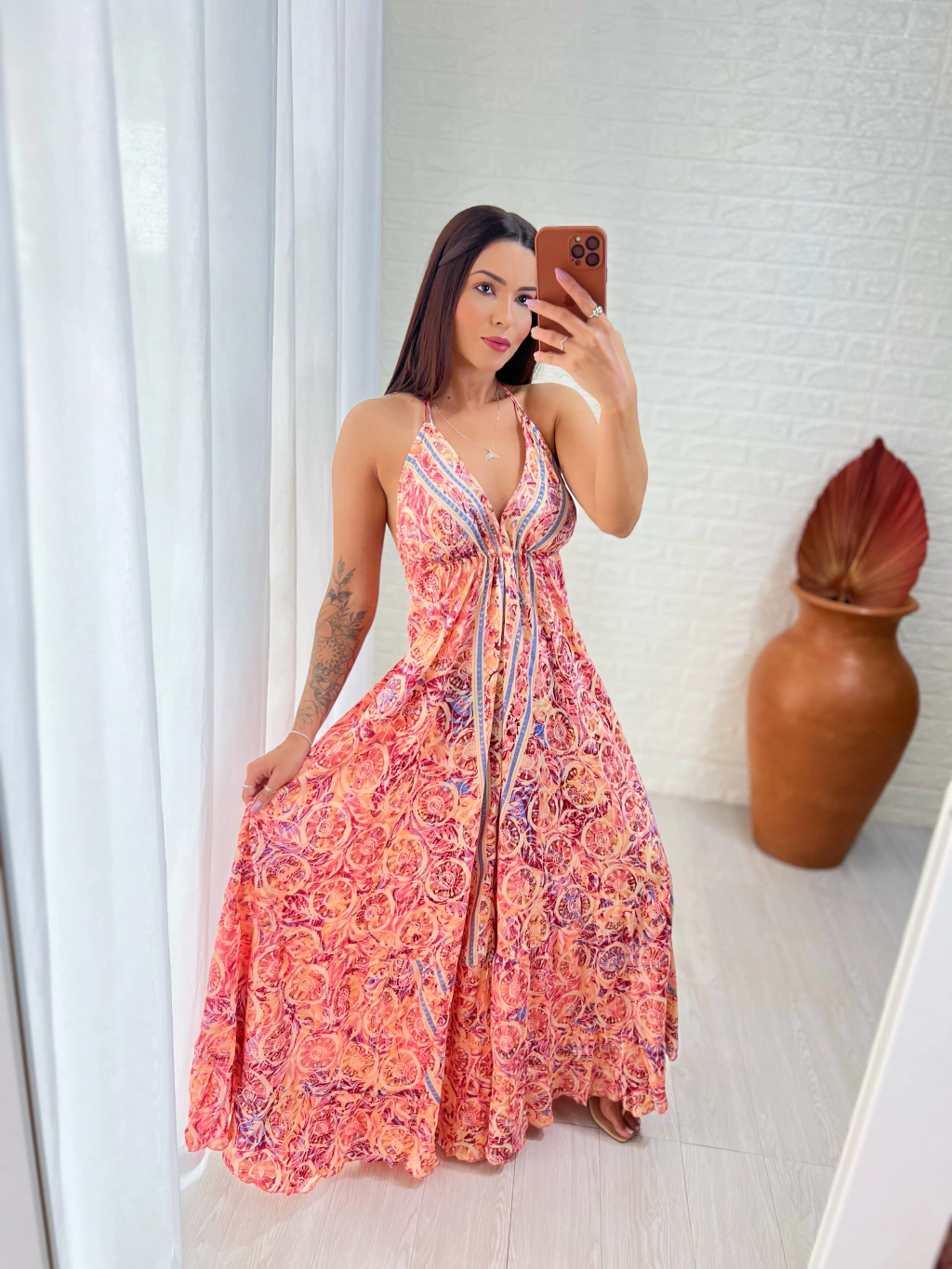 Descubra a elegância e o conforto do nosso Vestido Indiano confeccionado em tecido crepe acetinado. Este vestido é perfeito para diversas ocasiões, proporcionando um caimento suave e sofisticado.