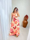 Com composição 100% poliéster, este vestido é ideal para diversas ocasiões, garantindo um caimento leve e fluido.
