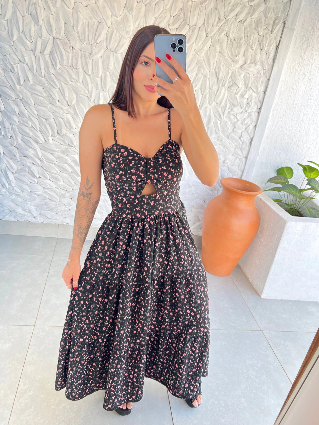 O Vestido Liz é perfeito para quem ama um estilo romântico com um toque de modernidade. Feito em tecido crepe duna com elastano, ele possui um comprimento longuete que é super tendência. Além disso, o vestido tem um caimento elegante e confortável, perfeito para diversas ocasiões. Com sua estampa floral delicada, o Vestido Liz é ideal para um look charmoso e cheio de personalidade.