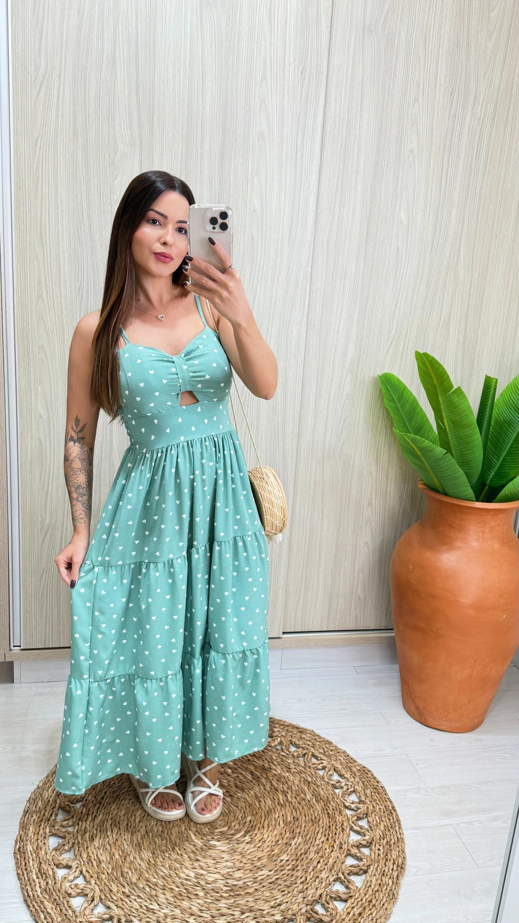 Romântico e confortável na medida certa, o vestido midi com estampa delicada ideal para compor looks delicados e cheios de charme. Possui busto drapeado com recorte discreto, saia em camadas que proporciona movimento leve e lastex nas costas, garantindo ajuste perfeito ao corpo sem abrir mão do conforto. As alças finas completam a proposta fresca e feminina.